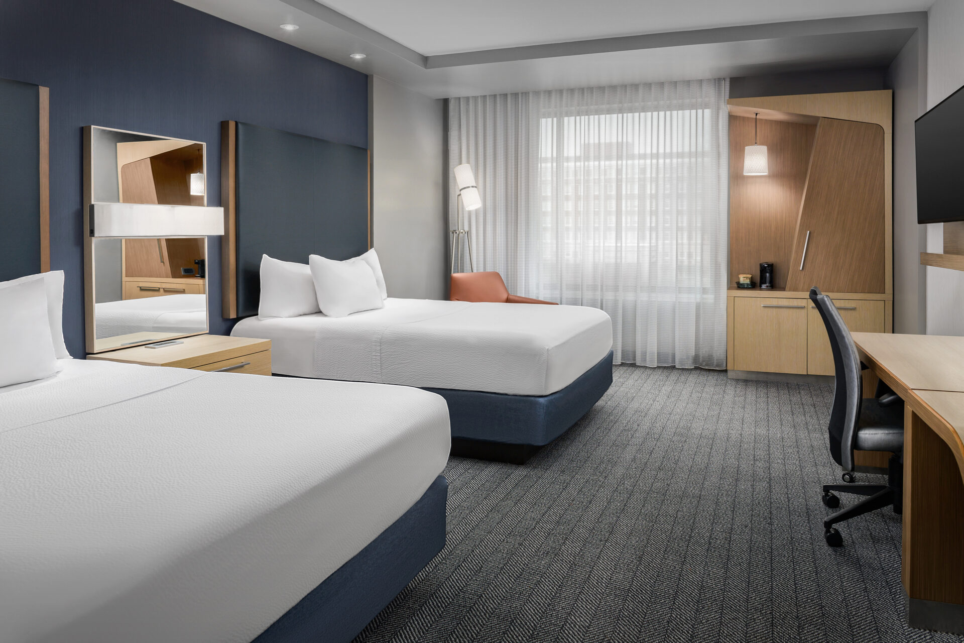 Check into the Courtyard by Marriott Muncie Downtown, located right next to the Horizon Convention Center. This modern hotel puts you close to downtown dining and attractions while giving you everything you want after a long drive: warm rooms, comfortable beds, easy parking, and amenities to keep you entertained indoors, including an indoor pool, hot tub, and fitness center. Cozy and convenient, it’s a home base you’ll look forward to coming back to each evening.