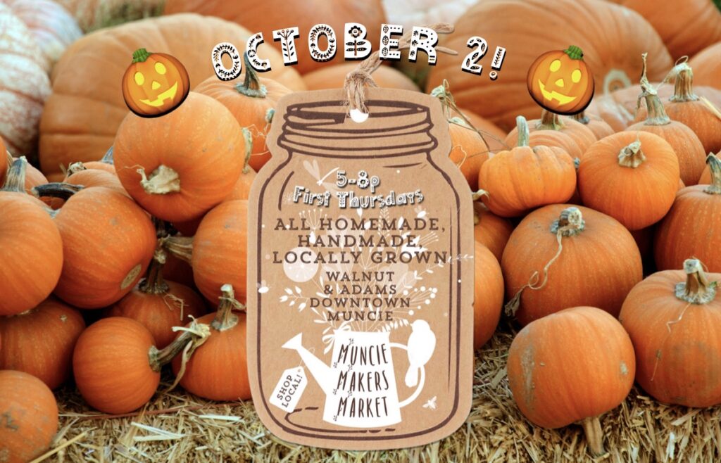Be sure to COME HUNGRY to the Muncie Makers Market! Youβll find us set up outdoors at Adams & Walnut for the October 2025 First Thursday! We are a community farmers market with fresh homemade food, locally grown produce, live plants, and handmade arts of all kinds!