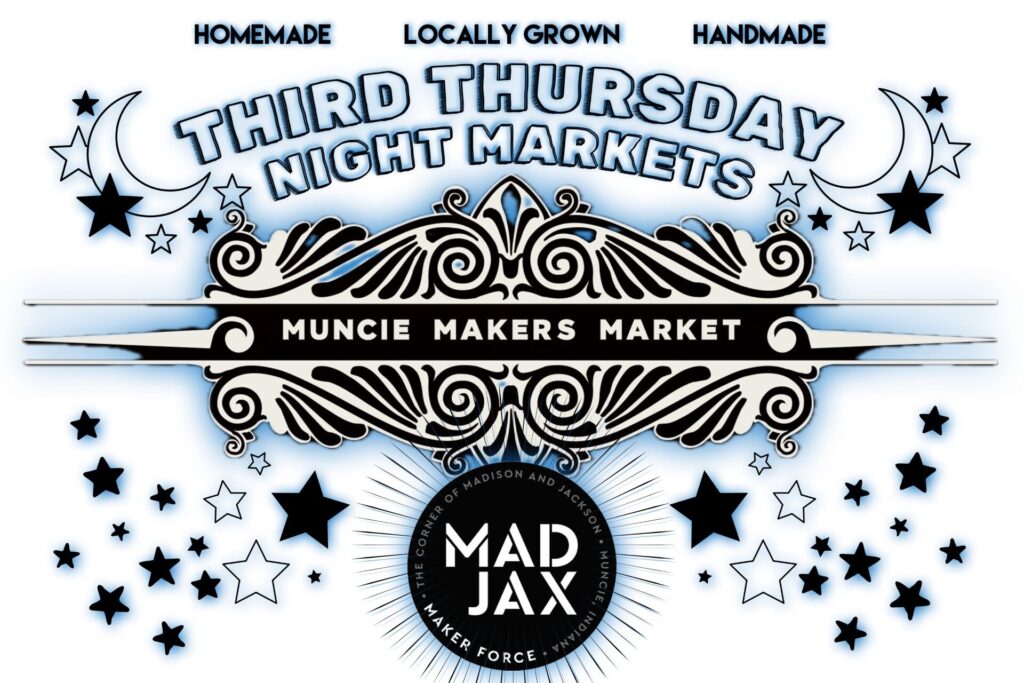 Third Thursdays come alive at MadJax with the Muncie Makers Market! Come see The Night Market – a monthly indoor evening of local shopping, food and drinks, community connection, and creative exploration!