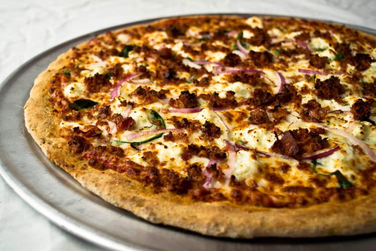 Bruce’s Pizza is located inside The Heorot in Downtown Muncie and makes the best pick-your-own topping pizza, round or square.