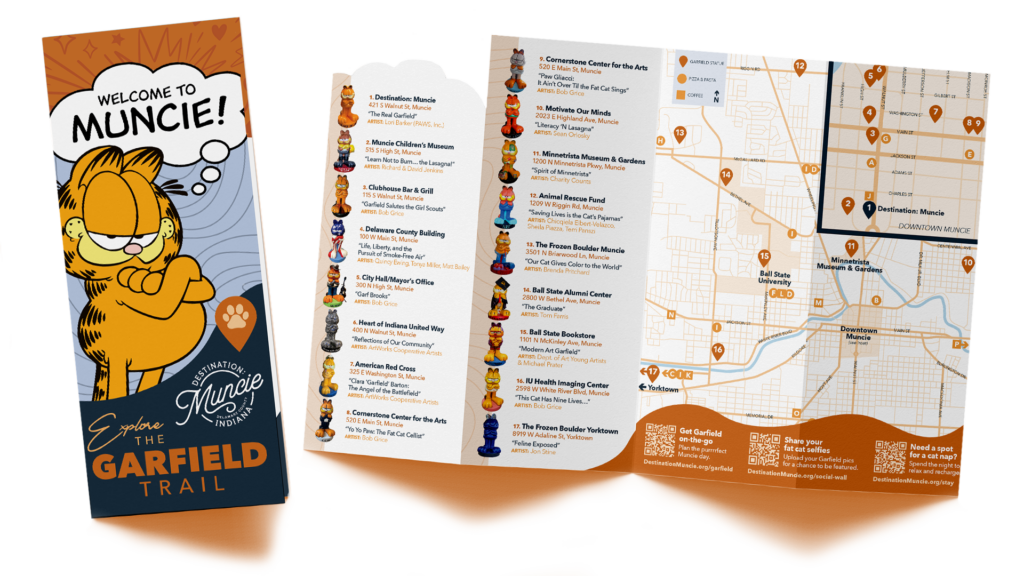 Want a keepsake brochure highlighting your fat cat frolic through Muncie? Stop in the Destination: Muncie visitors center to pick one up or print your own from home.