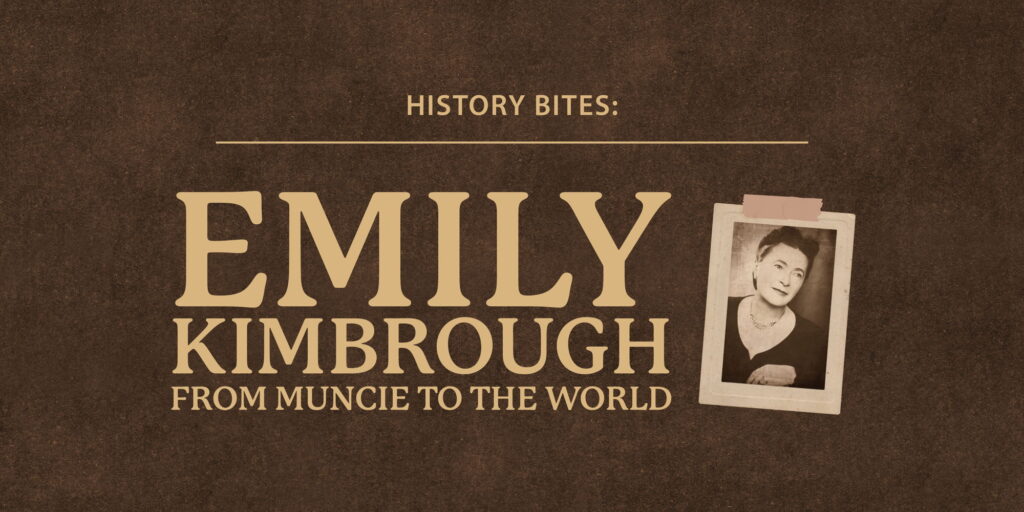 Join local historian Karen Vincent for an engaging look at the life and career of Muncie native Emily Kimbrough. Many know she authored several books, including How Dear to My Heart about her early years here. Less widely known is the remarkable scope of her career—she was a magazine editor, hosted her own radio program, wrote magazine articles and television scripts, traveled internationally, and crisscrossed the country as a lecturer. Guests will gain a deeper understanding of her life and influence beyond Muncie—drawing from a large collection of manuscripts, correspondence, photographs, and personal papers donated to the Delaware County Historical Society—while enjoying delicious appetizers.
