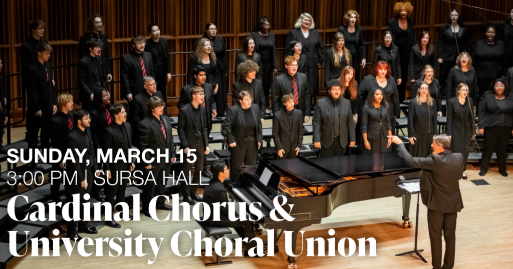 Hear the Cardinal Chorus and the University Choral Union live in concert! Under the direction of Andrew Crow and Kerry Glann, the Ball State Choirs present a series of concerts each year featuring a wide range of music from around the world and across the centuries.
