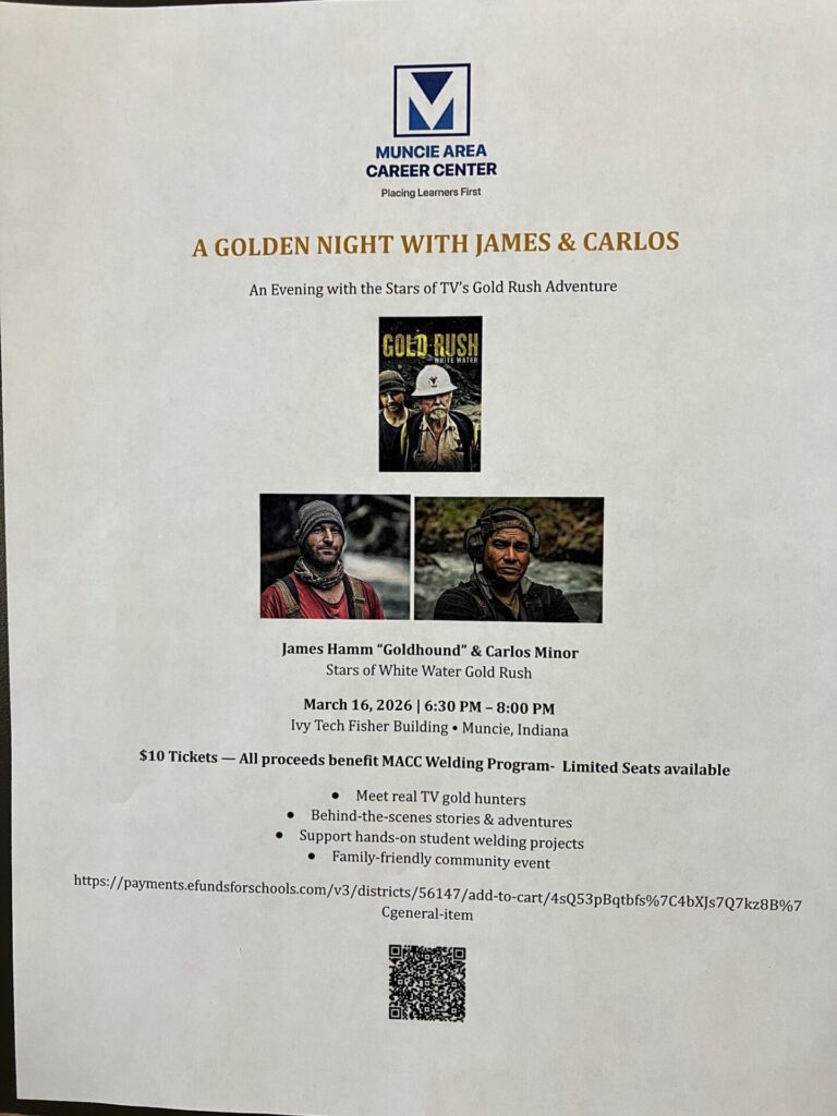 An evening with two of the Stars from White Water Gold Rush. James Hamm (Gold Hound) and Carlos Minor will share behind-the-scenes stories and adventures from their experience hunting gold in Alaska. This is a family-friendly community event. This will be an interactive event with the audience being able to submit questions to the two Gold Hunters. It is an opportunity for typical midwestern gold hunting enthusiasts to meet two of their favorite reality stars.